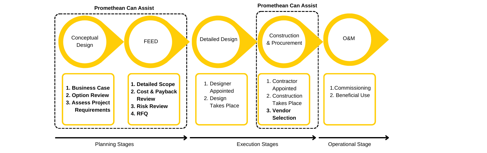 Promethean Engineering can support your project during the planning stages of Conceptual Design and FEED. We offer a range of services in these areas and we can tailor our support to your requirements.